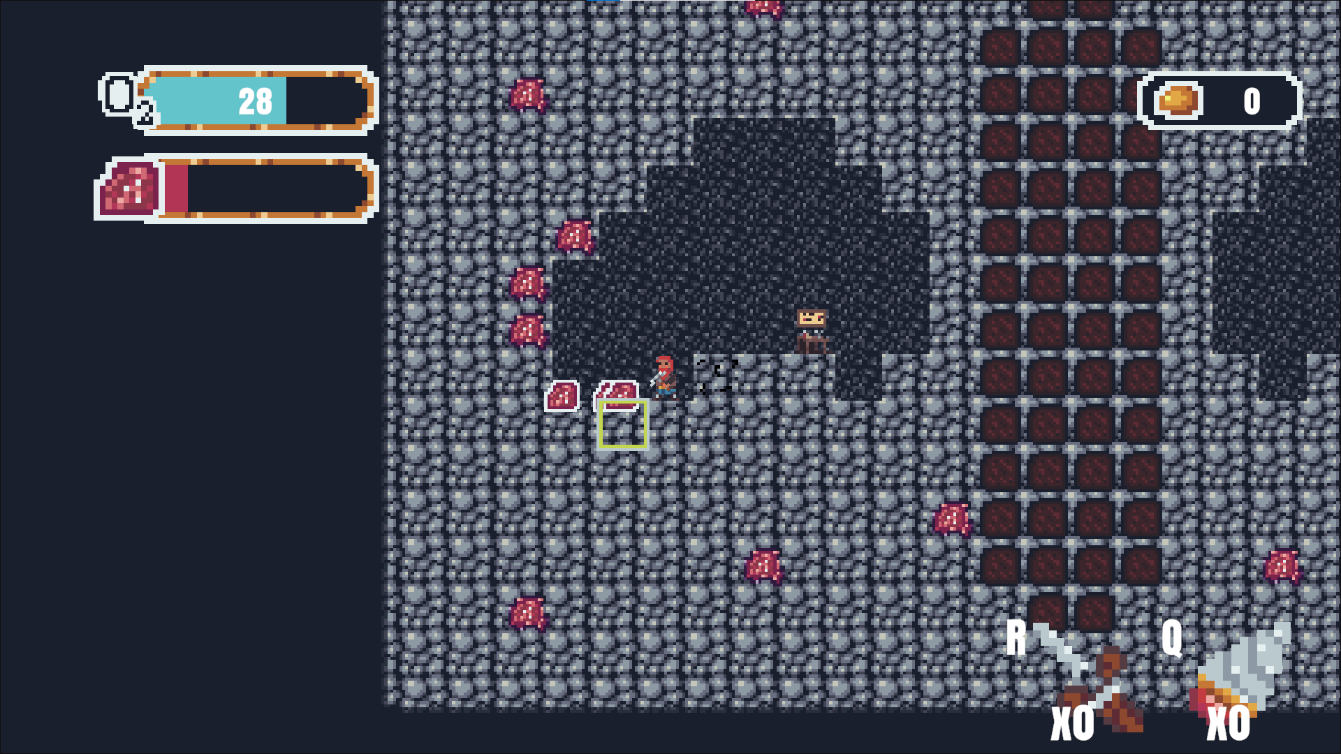 By collecting ore you can craft different tools at a workbench.